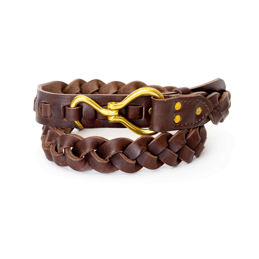 Preppy classic is back. You can't go wrong with having this classic in your closet. It's a versatile, functional and handsome saddle bridle leather belt you can wear casually or in more formal situations. All of our belts are made from ultra-durable Bridle Leather. The same leather used by all of the local tack shops for anything from saddles to halters. Featured in dark brown and mystery woven to perfection with a classic hoof pick buckle. All of our belts come gently rolled and tied in a burlap sack.  Handmade here in Lexington, Kentucky.